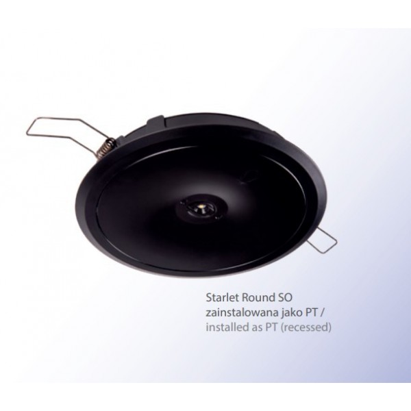3,5W avarinis/evakuacinis šviestuvas STARLET ROUND LED atviroms erdvėms, juodas, su 1h avariniu moduliu. Įleidžiamam montavimui reikalingas rėmelis.