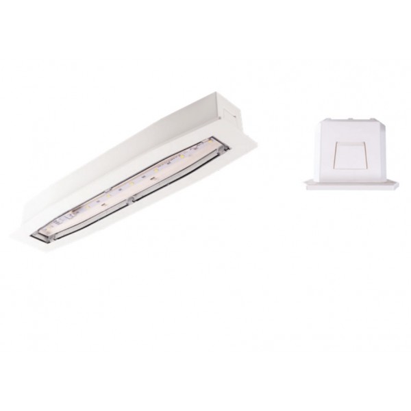 6W įleidžiamo montavimo avarinis/evakuacinis šviestuvas SUPREMA D PT, automatinio testavimo funkcija, gali šviesti iki 3h avariniu režimu, IP44, SA (M), baltas