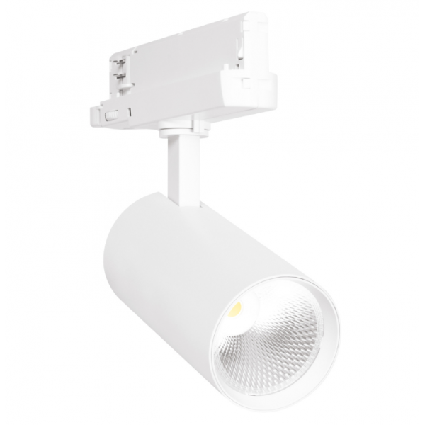 30W LED akcentinis šviestuvas į 3 fazių bėgelius TRACKLIGHT SPOT, baltas, 3000K, 24°, DALI. Papildomai galima įsigyti reflektorius 15°, 36° arba 50° šviesos kampui.