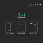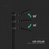 20W LED gatvės šviestuvas su saulės baterija ir judesio davikliu, juodas, 3000/4000/6000K, 140°x70°. Saulės panelės galia - 12,5W.