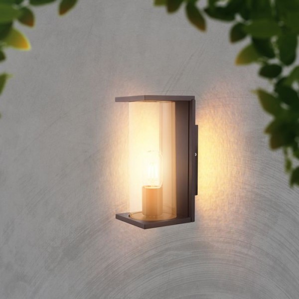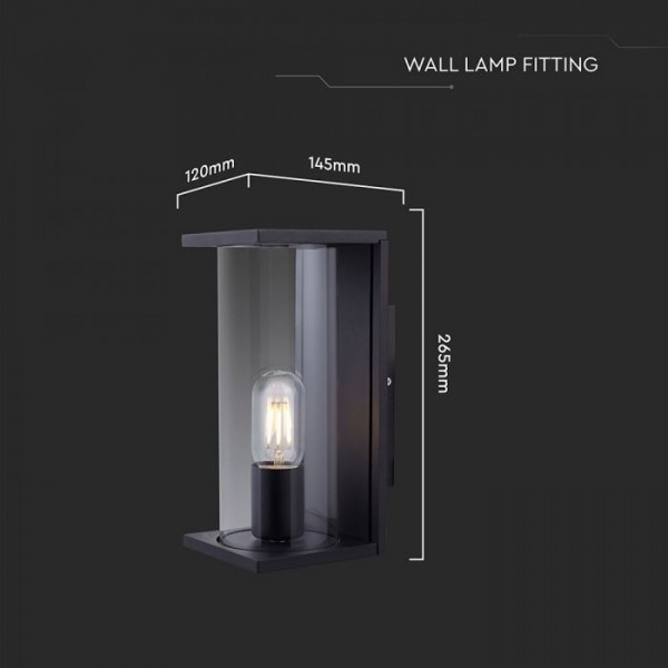 Sieninis šviestuvas, E27, juodas korpusas/skaidrus stiklas, IP44