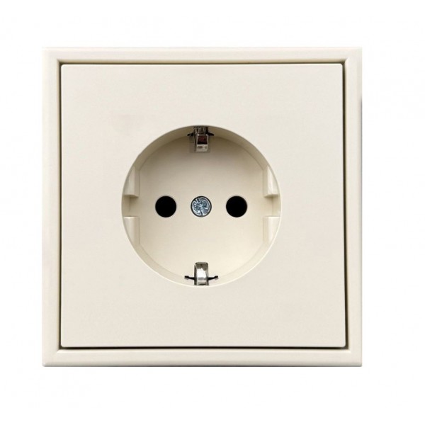 Kištukinis lizdas su įžeminimu ir sklendėmis MODERN, spyruokliniai pajungimo kontaktai, be rėmelio, smėlio sp.