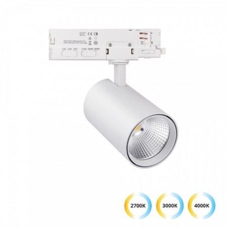 30W LED akcentinis šviestuvas į 3 fazių bėgelius KENTO, baltas, 2700/3000/4000K, dimeriuojamas, 24°