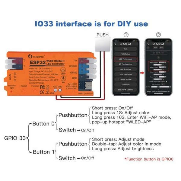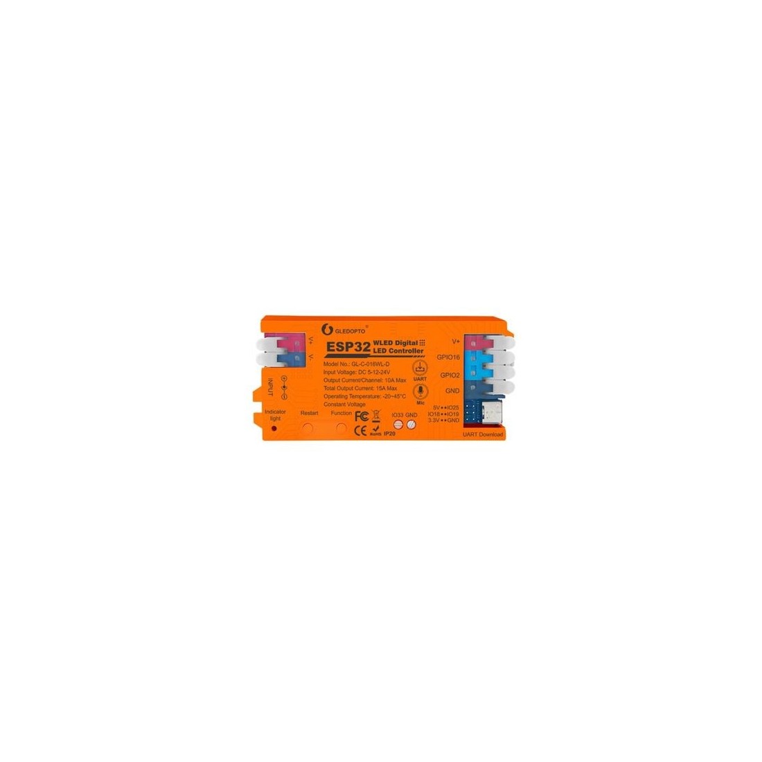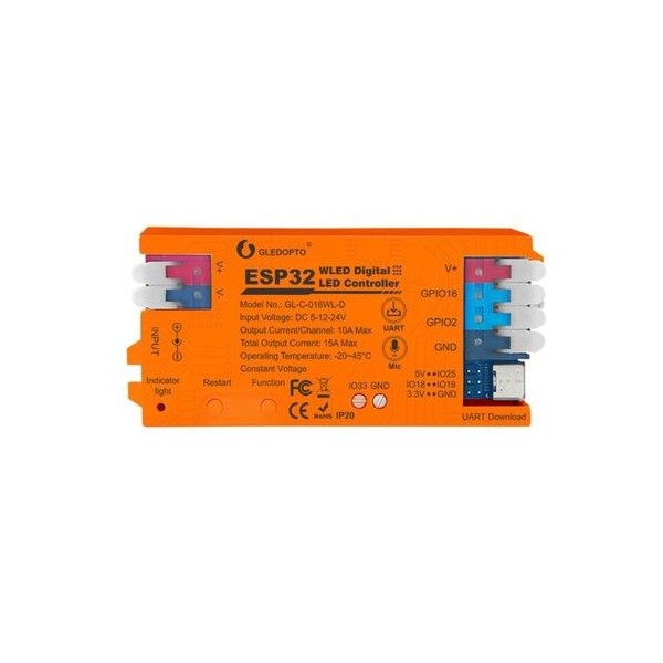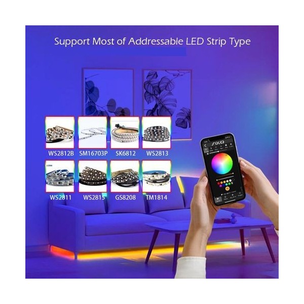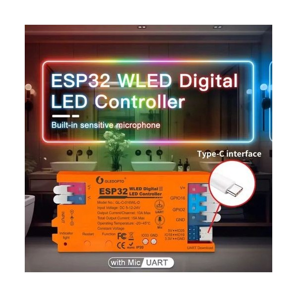 Skaitmeninių LED juostų valdiklis, 5-24V, 15A, 800pix, su mikrofonu, Wi-Fi, UART USB-C