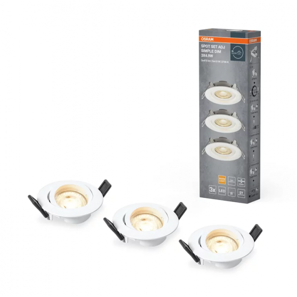 4,9W LED įleidžiamas šviestuvas SPOT, baltas, 2700K, dimeriuojamas, 3vnt. komplekte