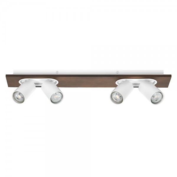 Paviršinis šviestuvas SPOT MERCURY, 4xGU10, baltos/medienos sp., su 4x3,4W 2700K dimeriuojamom LED lemputėmis