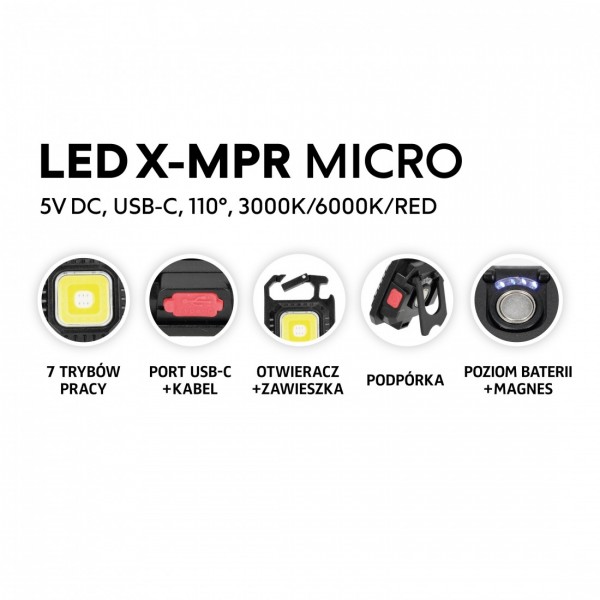 7,4W LED įkraunamas žibintuvėlis X-MPR, juodas, 3000/6000K