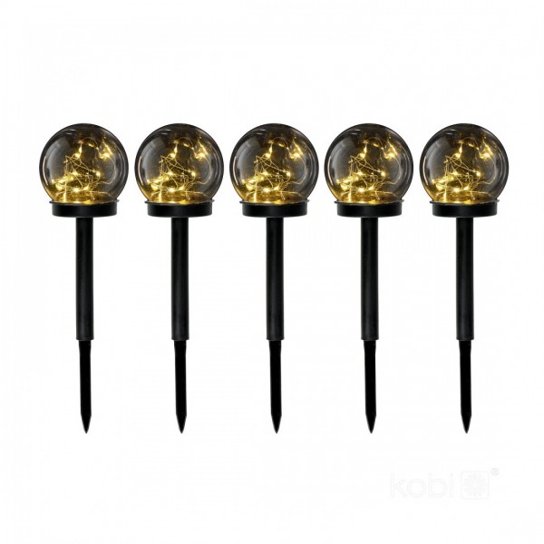 0,12W LED įsmeigiamas šviestuvas su saulės baterija GLOBE, juodas, 3000K, IP44, 5vnt. pakuotė