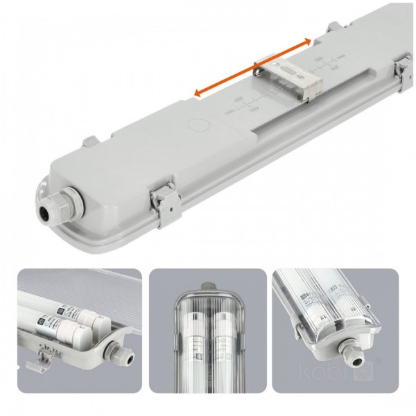 Linijinis šviestuvas G2, pilkas, su 2x LED T8 18W 120cm 6500K lempomis, IP65