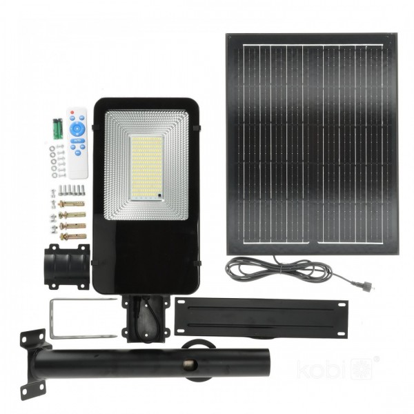 11W LED gatvės šviestuvas su saulės baterija SOLIT, juodas, 4000K, IP54, su nuotolinio valdymo pulteliu
