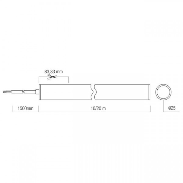12,5W/m LED šviečiantis kabelis XLOOP 25MM, 4000K, 336LED/m, 48V, IP65, 10 metrų ritė