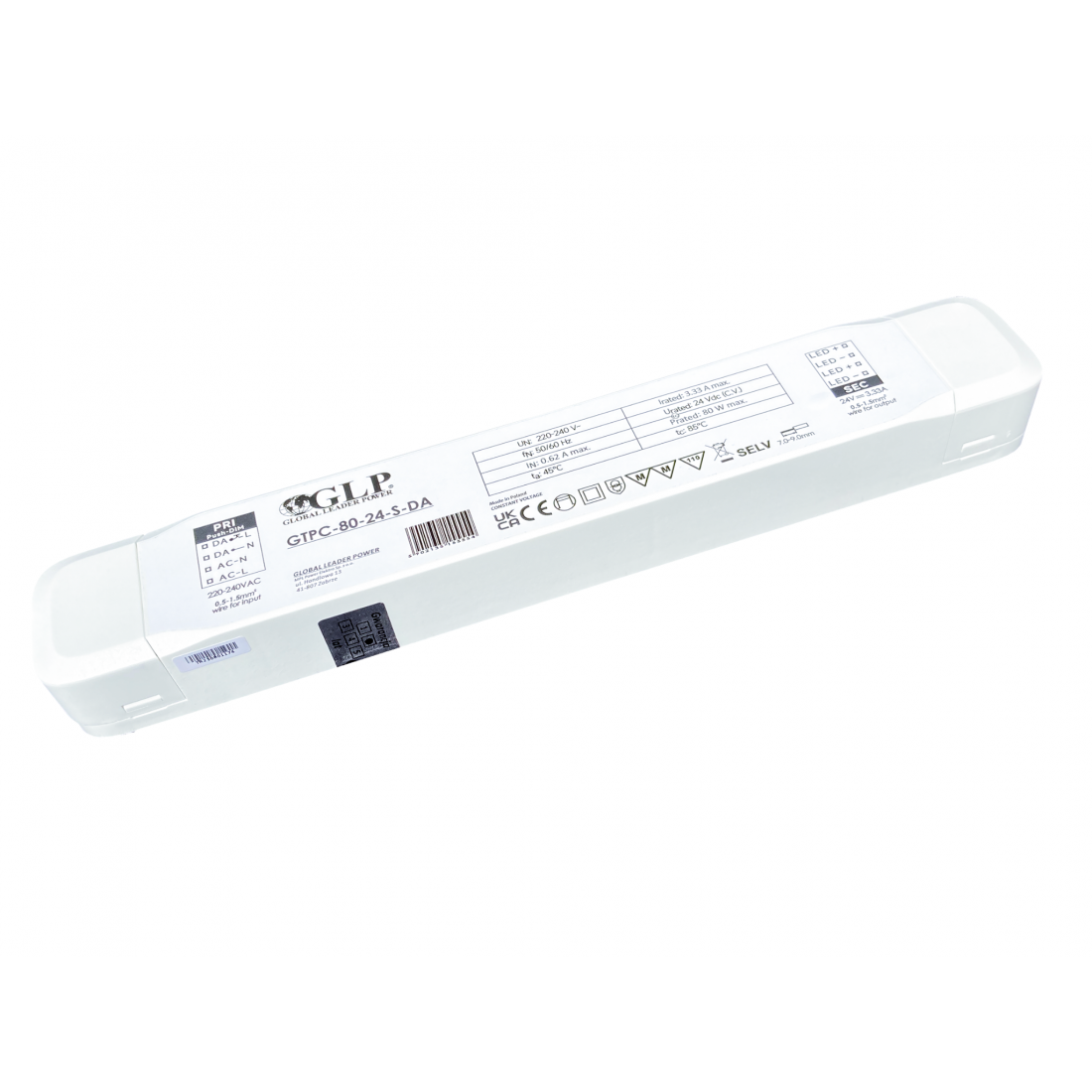 80W LED maitinimo šaltinis GTPC, 24V, IP20, DALI/PUSH