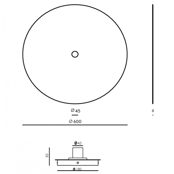 Sieninis šviestuvas FLAT, E27, juodas korpusas ir diskas, 60cm. Lemputė parduodama atskirai.