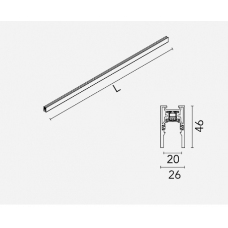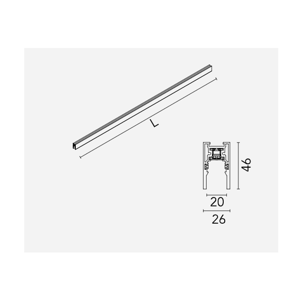 Paviršinis/pakabinamas magnetinis bėgelis THE TRACKING MAGNET, šlifuoto aliuminio, 2m, 48V