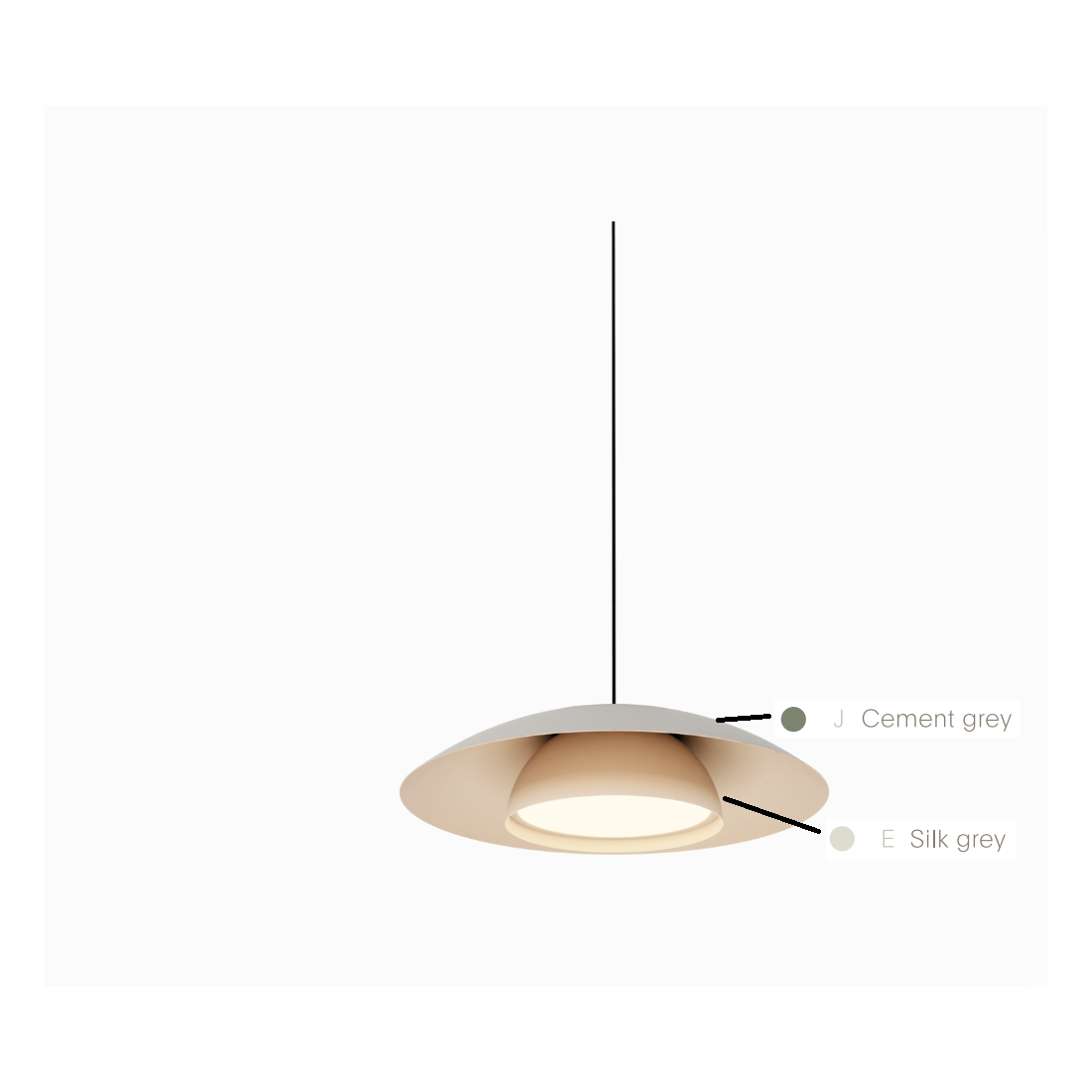 12W LED pakabinamas šviestuvas TIRES MODEL 3, pilkas (RAL 7044 / RAL 7033), 3000K, su maitinimo šaltiniu