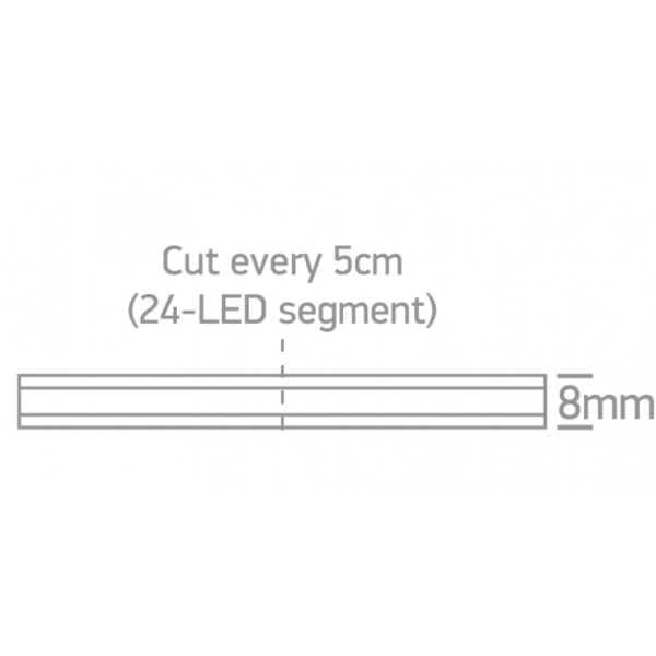 7,5W/m lanksti COB LED juosta, 24V, IP20, 480LEDs/m, 3000K, 20m ritė. Karpoma kas 5cm.