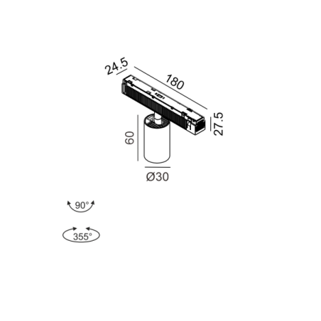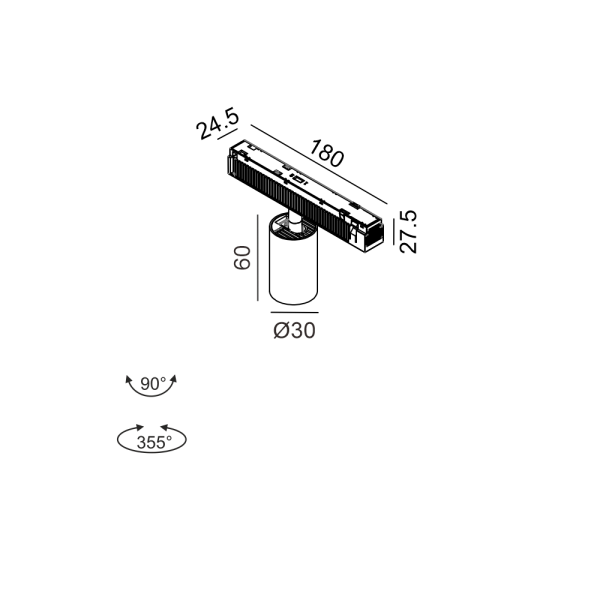5,4W LED šviestuvas TUB S A 60 į magnetinę sistemą IN_LINE, bronzos sp., 3000K, 48V, 50°, 2G