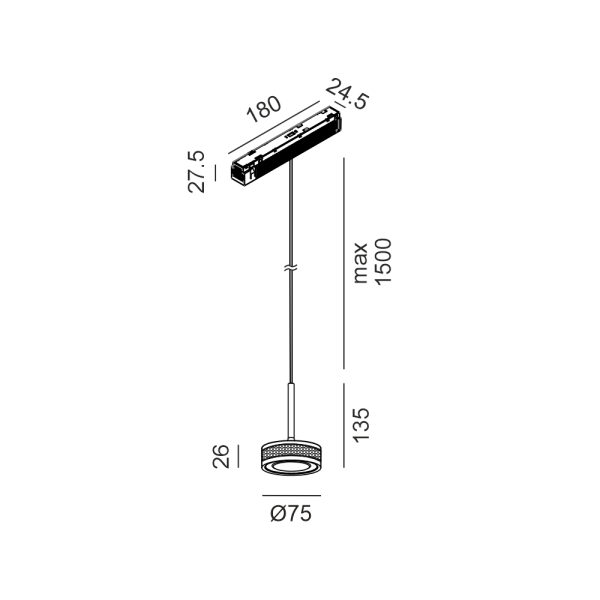 7W LED pakabinamas šviestuvas SOL MINI P į magnetinę sistemą IN_LINE, bronzos/juodos sp., 3000K, 48V, 24°, 2G