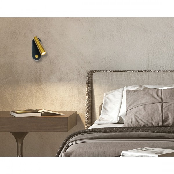 3W LED sieninis šviestuvas - skaitymo lempa, juodos/aukso sp., 3000K, su jungikliu