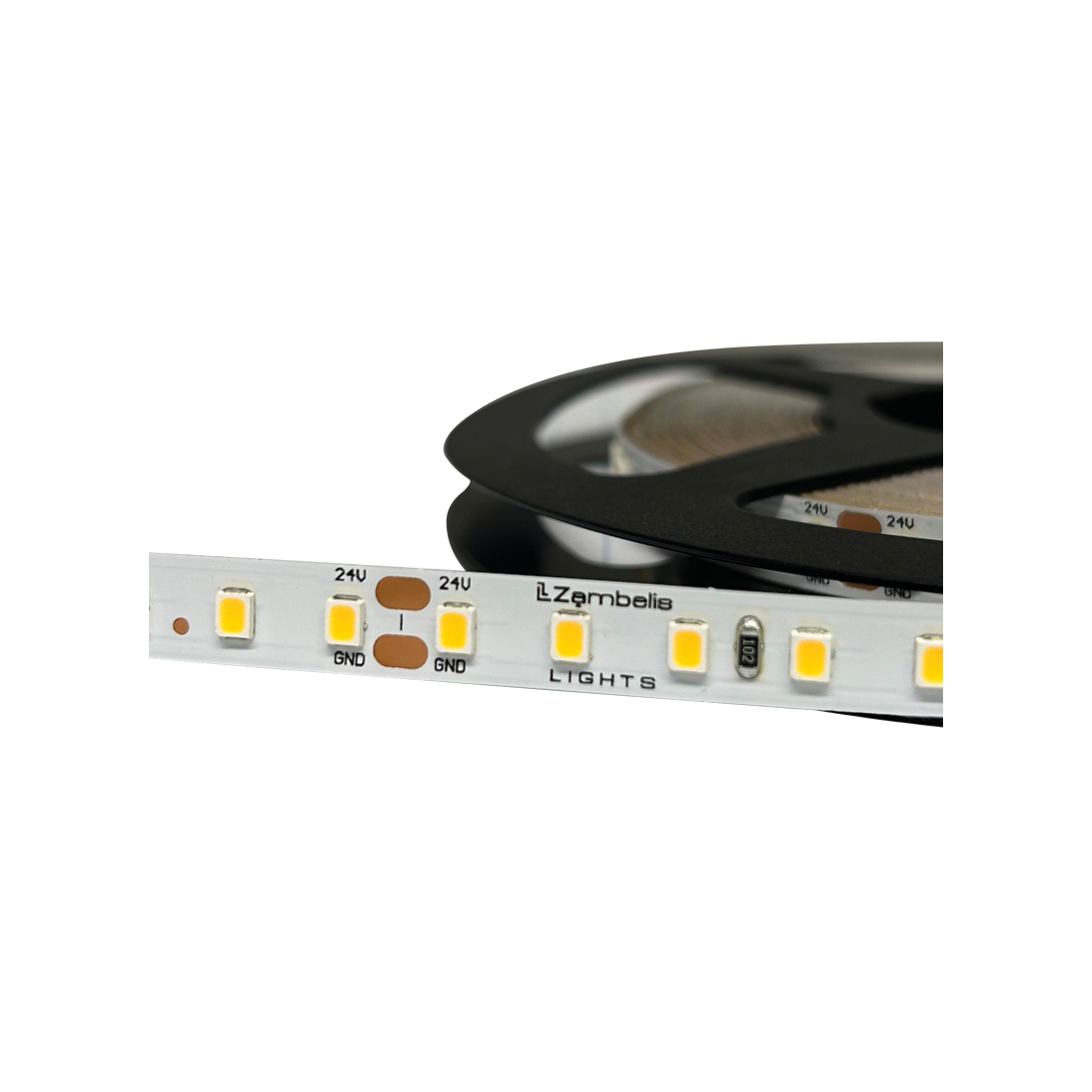 8,6W/m LED juosta, 24V, 120LEDs/m, 3000K, IP20, 5m ritė, LS24