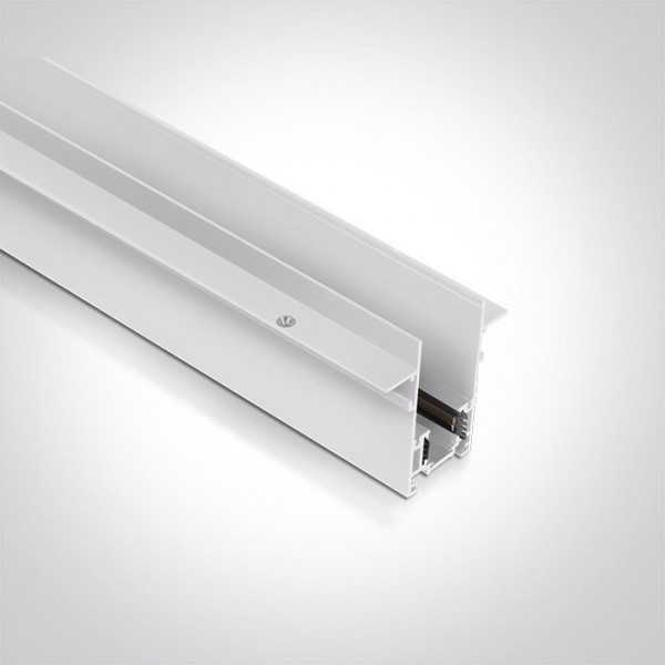 Užglaistomas magnetinių sistemų bėgelis MAXI, baltas, 2m. Komplekte: dangtelis, 2 vnt. užbaigimų, 2 vnt. mechaninių sujungimų ir 4 vnt. šoninių sujungimų.