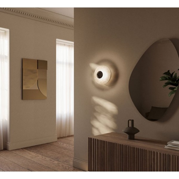 9W LED sieninis šviestuvas ANZA, juodas metalas/rudas marmuras/baltas alebastro diskas, 2700K