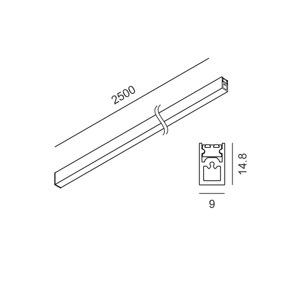 Pakabinamas/Paviršinis magnetinės sistemos AIR TRACK S bėgelis, 48V, Žalvario spalvos, 2,5m