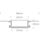 Įleidžiamas aliuminio profilis su PC baltu difuzoriumi, 2m. Komplektuojama su 2 poromis užbaigimų. Tinkama LED juostoms 37 mm.
