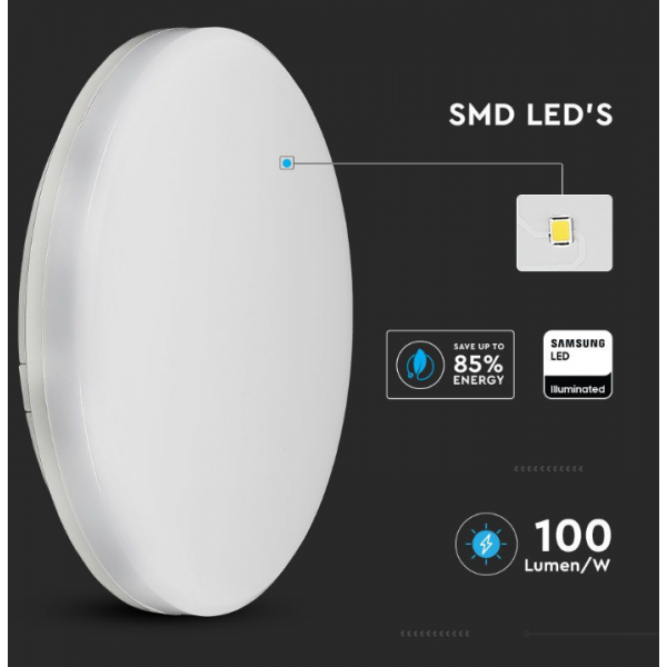 25W paviršinis šviestuvas V-TAC, 4000K, IP44, baltas, apvalus