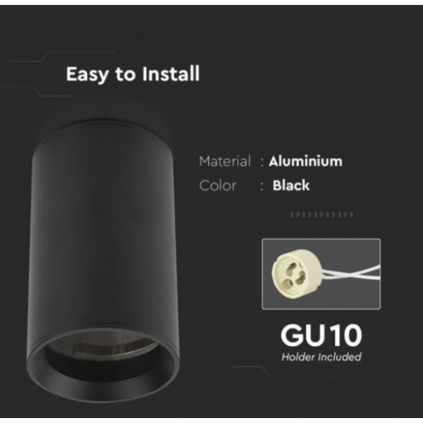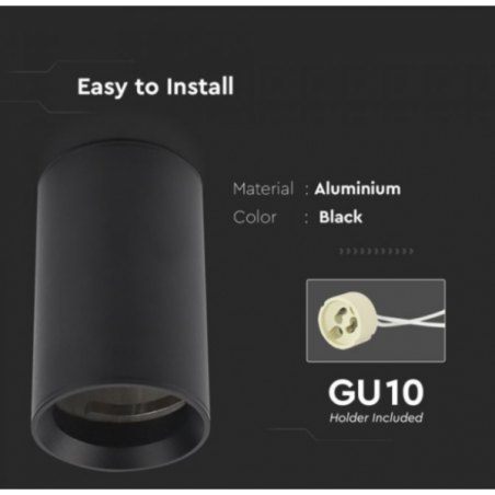 GU10 lemputės rėmelis V-TAC, juodas, aukštis 10cm