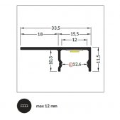 3m LED juostos profilis UNI-TILE12 C PLUS, 180 laipsnių, anoduotas aliuminis