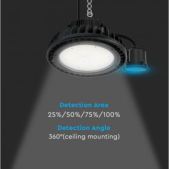 Mikrobangų judesio daviklis 140lm/W sandėlio šviestuvui, reguliuojamas jautrumas, IP65, 20123