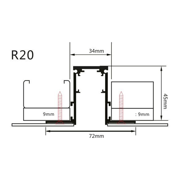 Užglaistomas magnetinės sistemos bėgelis OPTONICA, juodas, 2m, R20