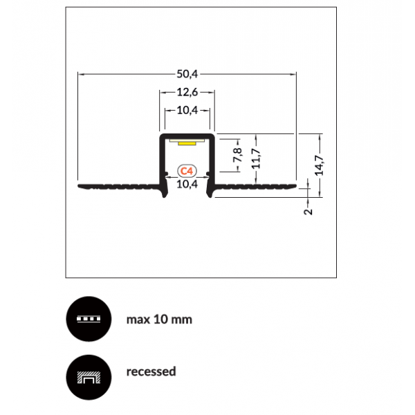 LED juostos profilis HIDE10 C4, anoduotas aliuminis, 2m