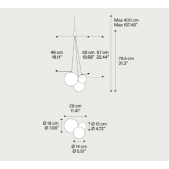 3x1W pakabinamas šviestuvas RANDOM, chromo sp. korpusas/dūmų sp. stiklas, 3000K, dimeriuojamas, su maitinimo šaltiniu, gaubtų skersmenys: 140 / 180 / 120 mm.