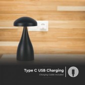 1W LED įkraunamas stalinis šviestuvas, juodas, 3000/6000K, dimeriuojamas. USB C įkrovimas, 5V, 1A.