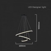 32W LED pakabinamas šviestuvas, juodu korpusu, 3000K. Šviestuvo žiedų skersmenys: 600mm, 400mm, 200mm.