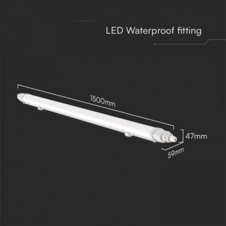 48W LED linijinis paviršinis šviestuvas L-SERIES, 150cm, baltas, 4000K, IP65. Šviestuvus galima sujungti tarpusavyje (iki 8 vnt.).