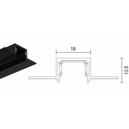 Užglaistomas magnetinės sistemos VIOKEF SLIM MAGNETIC bėgelis, juodas, 48V, 2m, su dangteliu ir užbaigimais